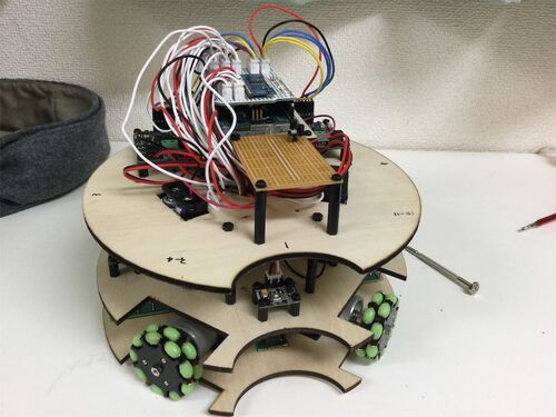 今日すること ドリブラーでボールを捕らえた状態で 回転をして、回り込みをする 今日やった事 ボールに乗り込まないように突っ張り棒を付けた ドリブラーでボールを捕まえた事を ドリブラーで回転数で感知できるようになった 次回やる事 ドリブラーでボール…